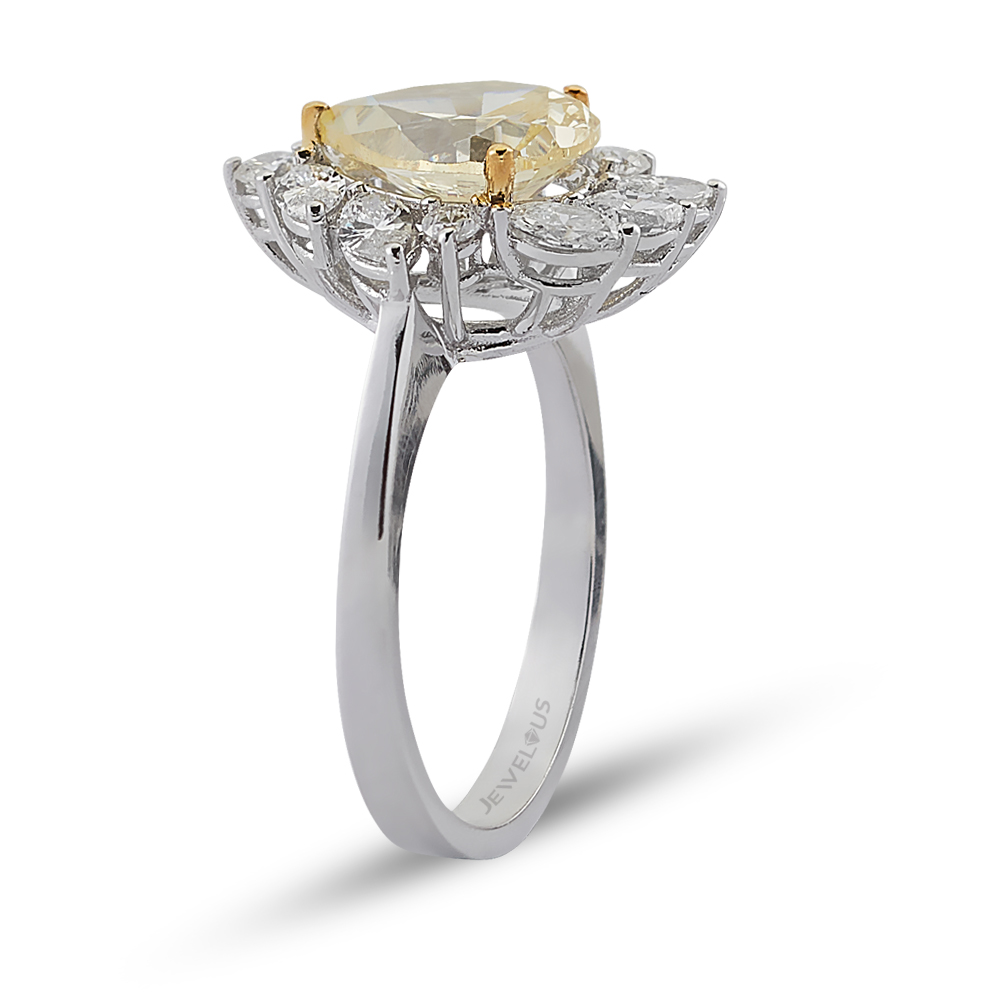 Exklusiver Klassiker dieser -MEINSCHMUCK- Weißgoldring mit Dıamondlite und Diamanten. Der Ring ist aus 585er Weißgold gefertigt und der Ringkopf wird von einem Dıamondlite (ca. 4,35 ct.) im Pearschliff und mehreren Diamanten (ca. 0,29 ct.) geziert. Er passt zu zahlreichen Stilrichtungen und zu besonderen Veranstaltungen – Sie werden begeistert sein. Dieser wunderschöne Brillantring eignet sich auch wunderbar als Antragsring!