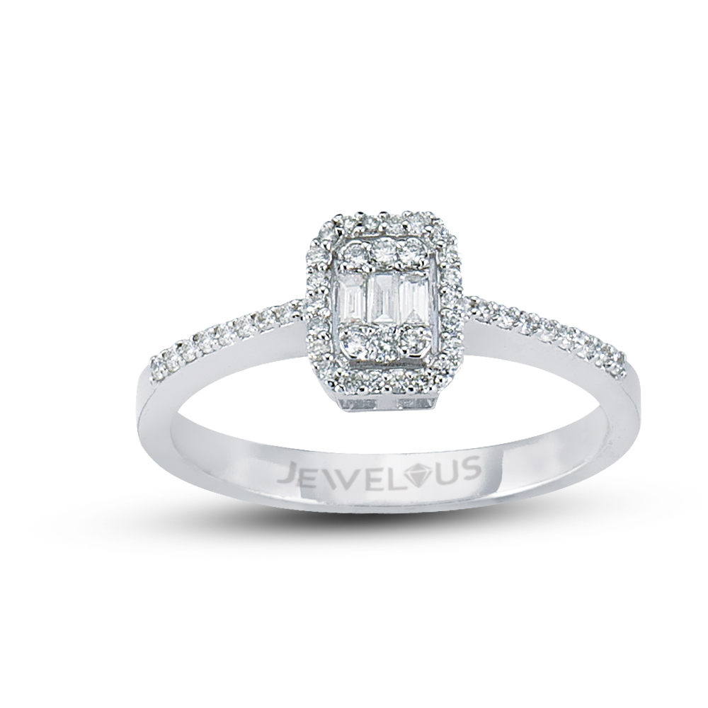 Ein abwechslungsreiches Spiel bestimmt das Design dieses -MEINSCHMUCK- Damenrings aus 585er Gold. Der Ring wird von drei Baguettesteinen gekrönt. Gehalten wird der Stein von einer quadratischen Fassung mit abgerundeten Kanten. Die Fassung zieren weitere Zirkoniasteinen im Verschnitt gesetzt mit wundervollem Funkeln. Der funkelnde Steinbesatz setzt sich auf der Ringschiene weiter fort. Die schmale Ringschiene gewährleistet ein angenehmes Tragegefühl.