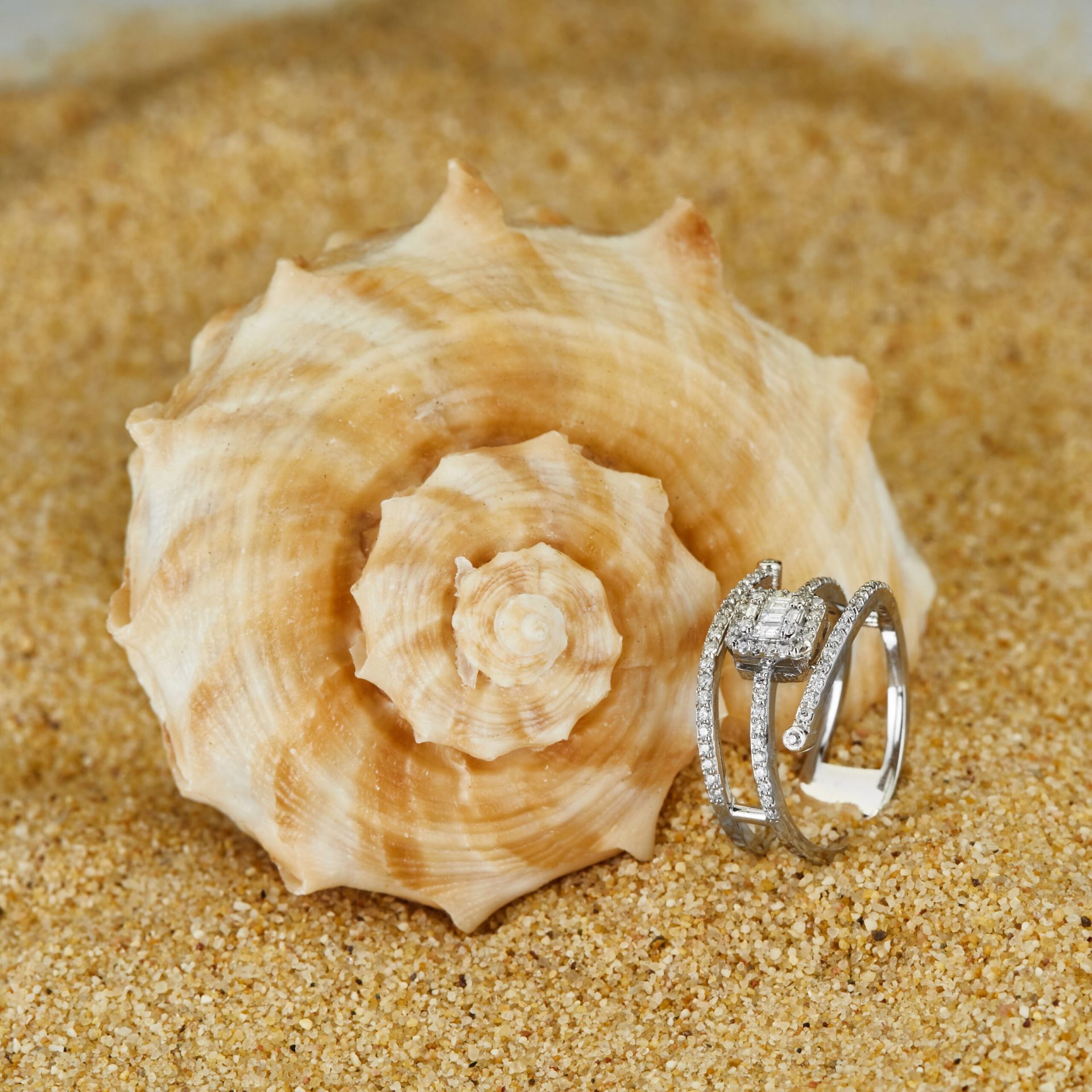 Ein feligraner Ring aus 585er Gold mit Zirkoniasteinen in Baguette- und Brillantschliff. Auf der mehrreihigen Ringschiene dieses Rings versammeln sich mehrere Zirkoniasteine. Der Ringkopf in quadratischer Form wird durch die Steine in Baguette- und Brillantschliff in Szene gesetzt. Die Zirkoniasteine verfügen über einen magischen Glanz, dem sich niemand entziehen kann. Insbesondere bei Lichteinfall entstehen atemberaubende Reflexionen. Er ist ein Symbol unvergesslicher Momente, denn jeder Stein kann für ein besonderes Ereignis stehen. Er passt zu zahlreichen Stilrichtungen und zu besonderen Veranstaltungen – Sie werden begeistert sein! Dieser wunderschöne Ring eignet sich wunderbar als Geschenk!