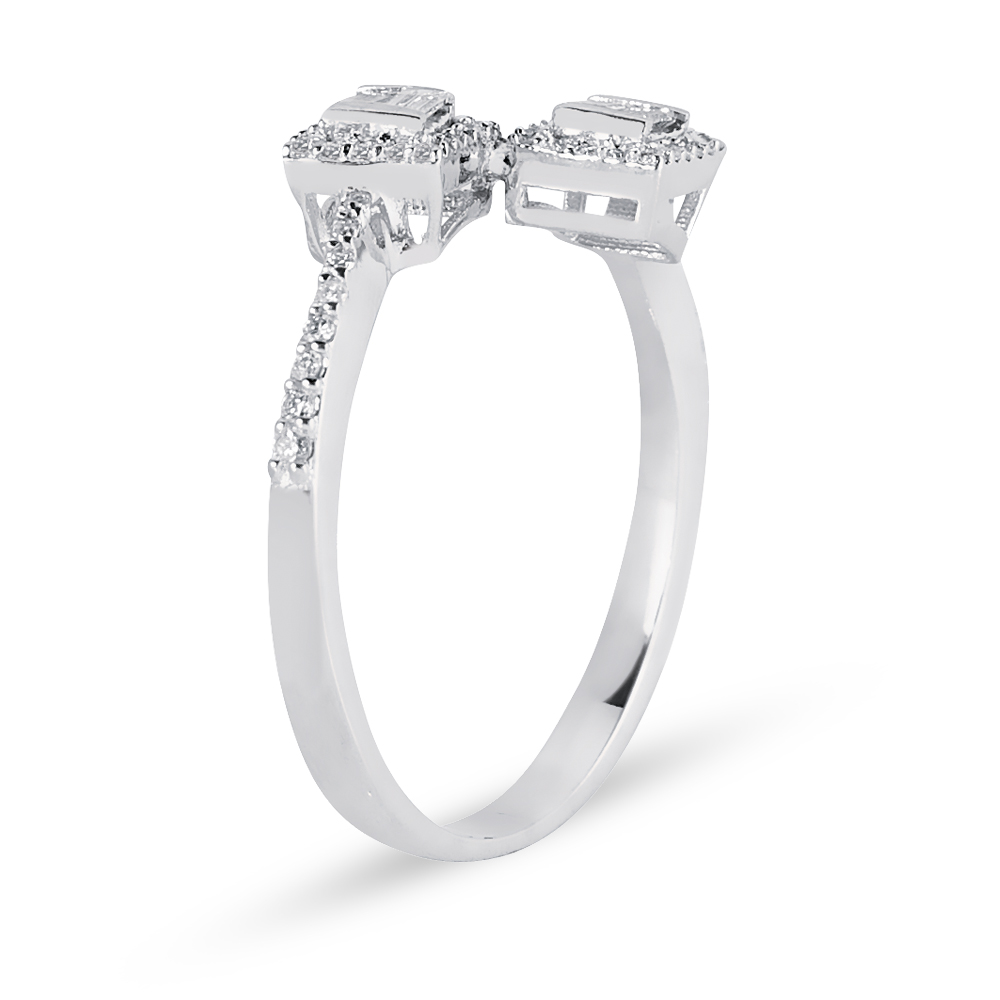 Edler Blickfang – ein MEINSCHMUCK Zirkoniaring mit exklusivem Steinbesatz. Die Ringschiene aus 585er Weißgold schmiegt sich kunstvoll an den edlen Blickfang dieses exklusiven Ringes an: die in rechteckiger Form gefassten Zirkoniasteins im Brillant- und Baguetteschliff. Zudem wird etwa die Hälfte der Ringschiene von weiteren strahlenden weißen Zirkoniasteinen geziert. Die schmale Ringschiene gewährleistet ein angenehmes Tragegefühl.