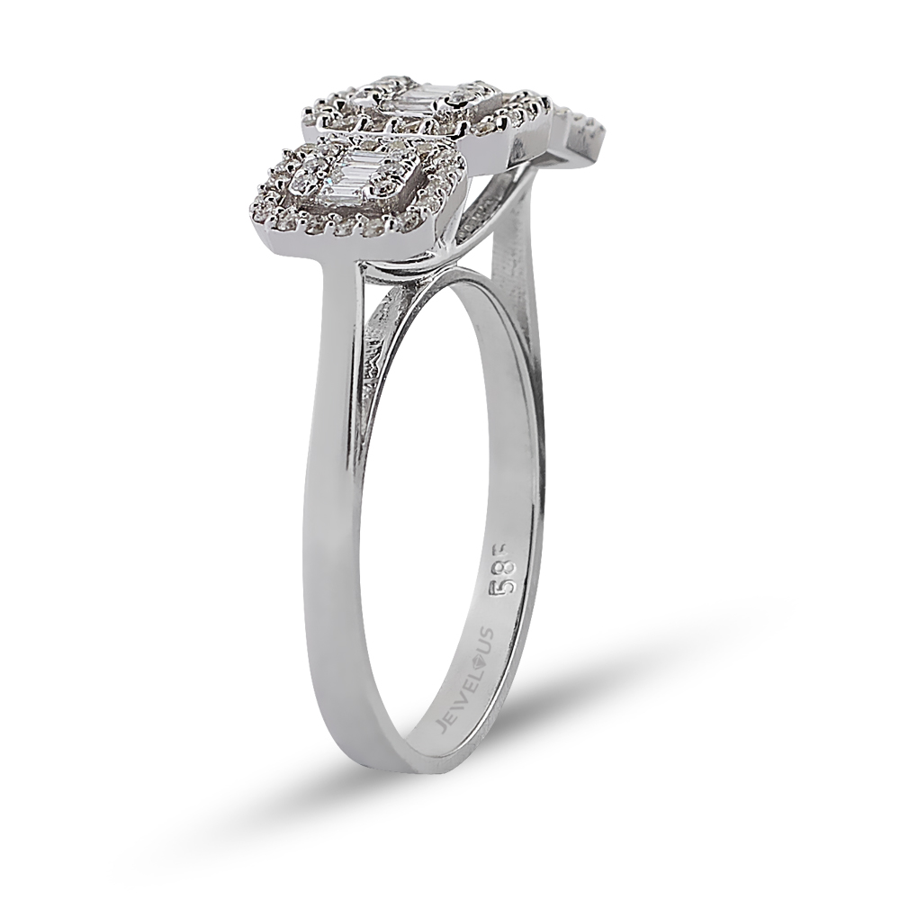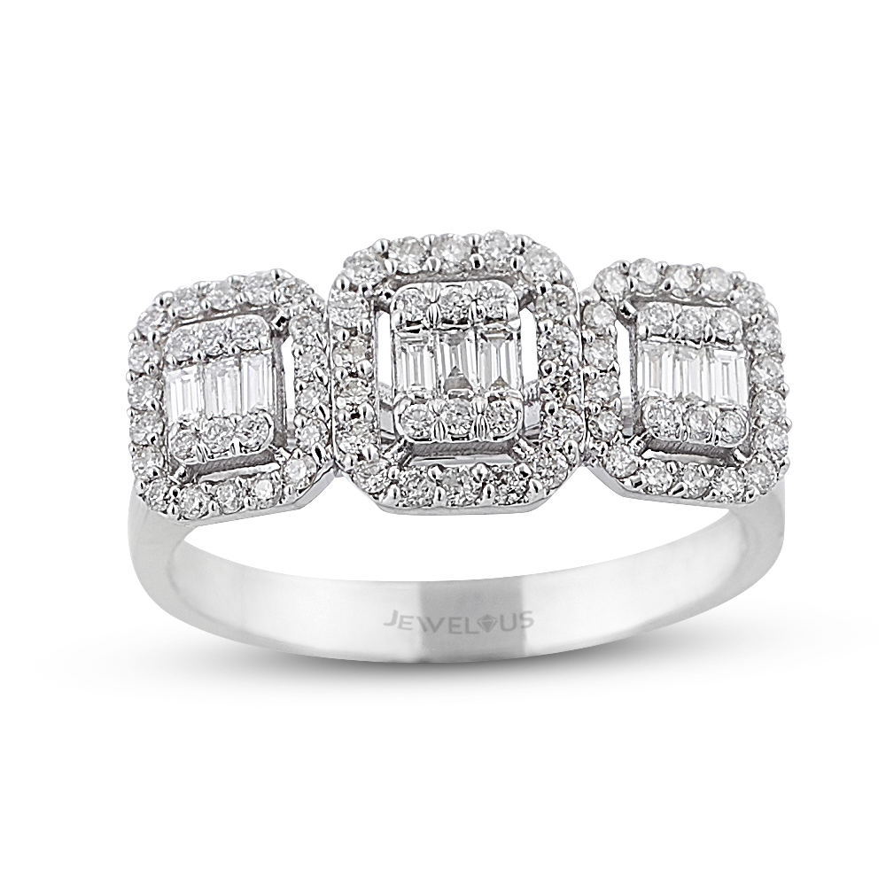 MEINSCHMUCK- Zirkoniaring / Verlobungsring aus 585er Gold. Der Ring wird von Zirkoniasteinen in Baguette- und Brillantschliff gekrönt. Gehalten werden die Steine von drei quadratischen Fassungen mit abgerundeten Kanten. Die Ringschiene gewährleistet ein angenehmes Tragegefühl. Er passt zu zahlreichen Stilrichtungen und zu besonderen Veranstaltungen – Sie werden begeistert sein!