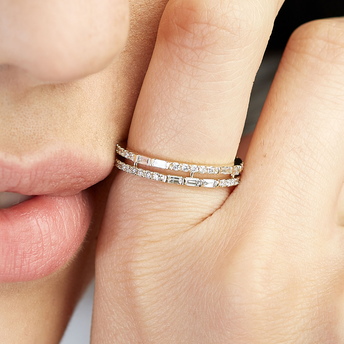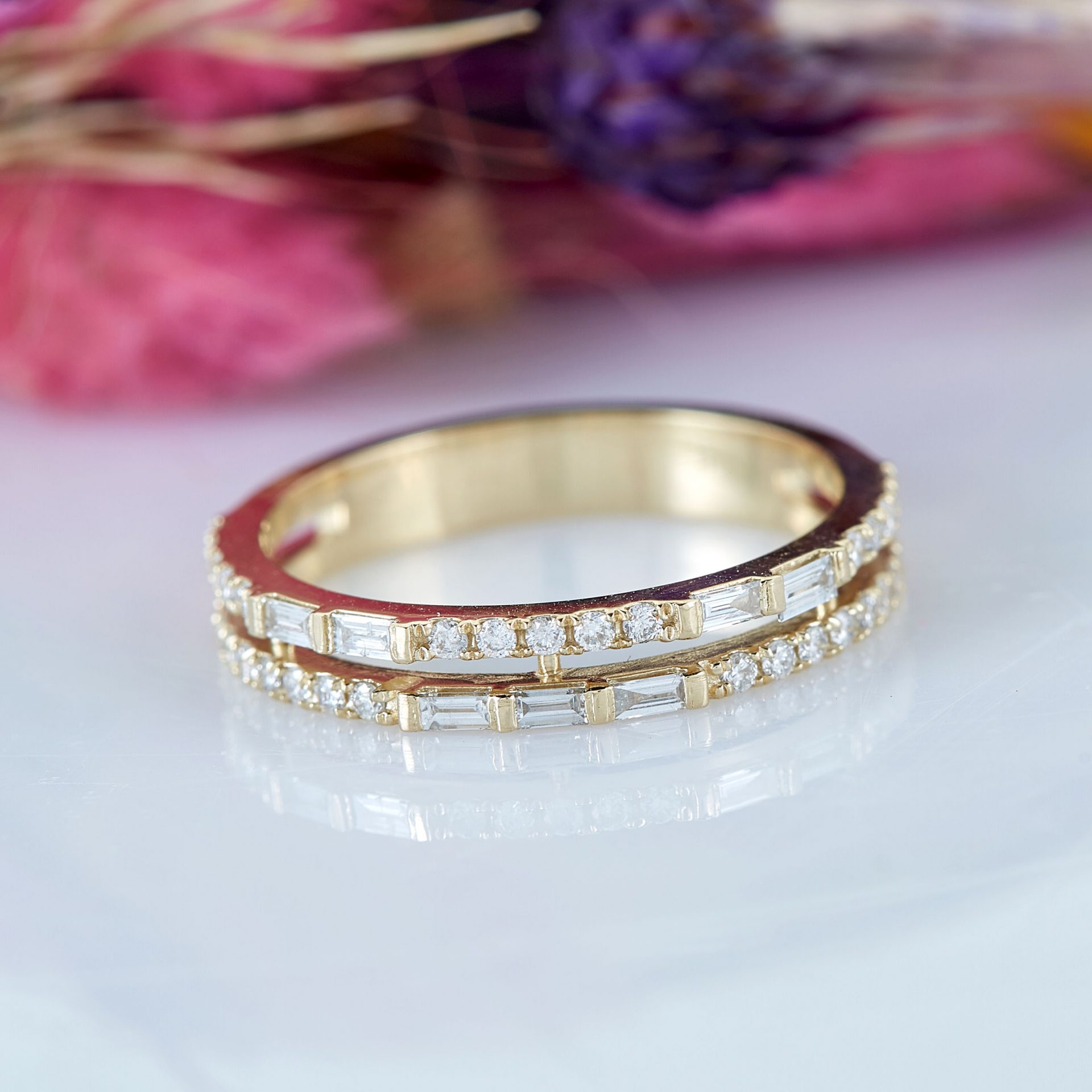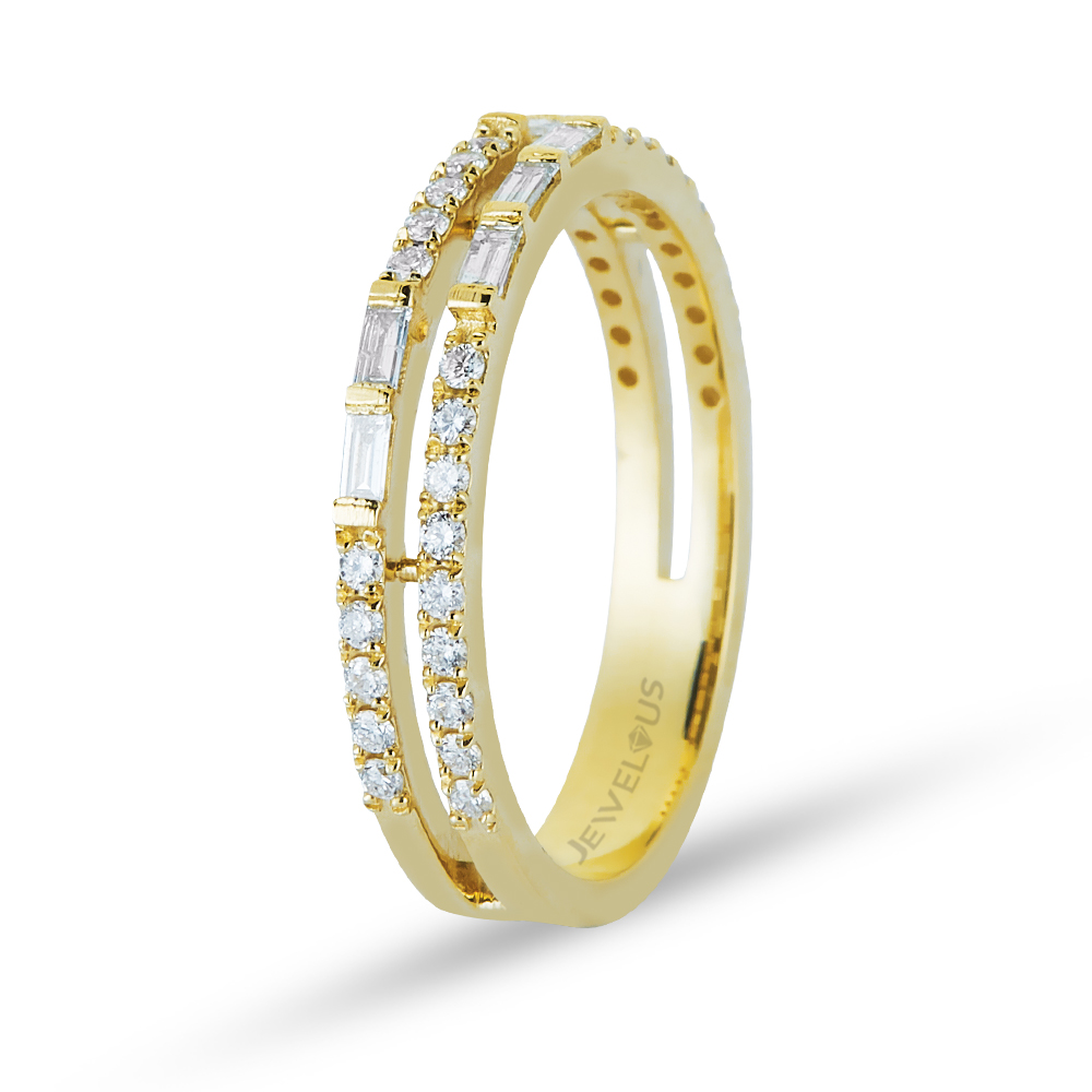 Ein einfarbiger MEINSCHMUCK Zirkoniaring – ein absolutes Highlight – mit 585er gelbgoldenem Glanz und zweireihiger Ringschiene. Die Verschnittfassungen rückt die Zirkoniasteine im Brillant- und Baguetteschliff perfekt in Szene. Diese Kombination aus der zweireihigen Ringschiene aus 585er Gold und dem Steinbesatz, macht aus dem filigranen Ring ein optisch abwechslungsreiches Schmuckstück, das zu zahlreichen Looks passen wird. Wir legen bei unserem Schmuck nur Wert auf eine exzellente Qualität. Dieser Goldring ist in den Farben Gelbgold, Weißgold und Rotgold erhältlich.